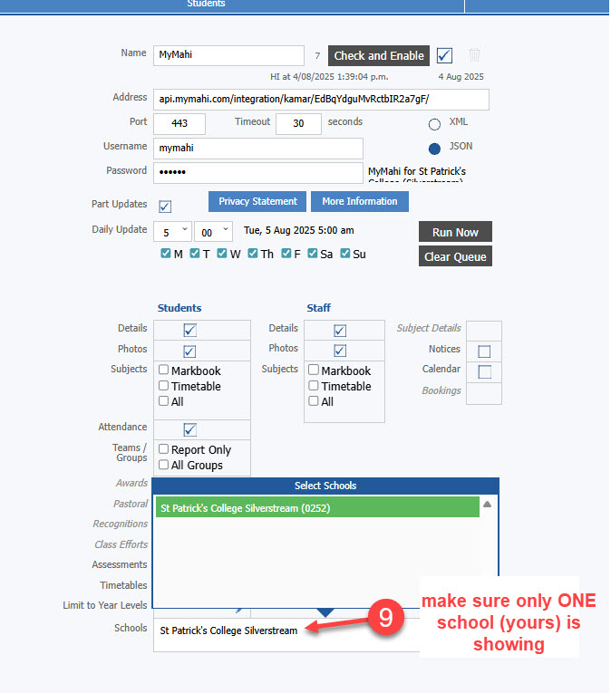 Congratulations. You have now connected your school's KAMAR feed for students to access via MyMahi.