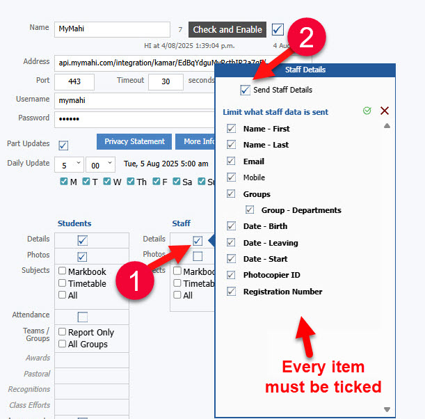 UPDATING A CURRENT SYNC: If you are updating an already existing Kamar sync to MyMahi then go directly to Part D below |