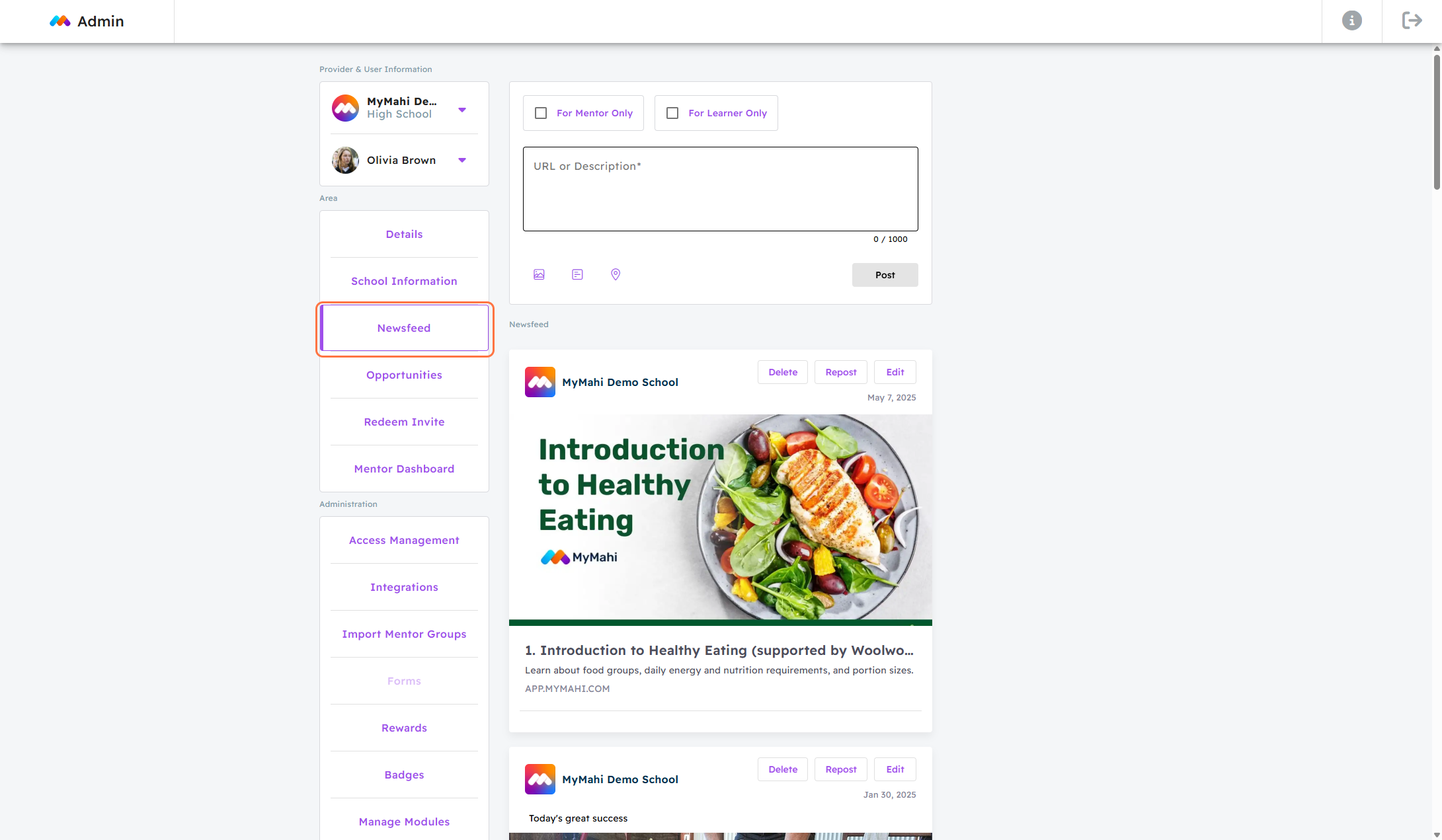 8. Delete, Repost, and Edit on the Published Newsfeed by Clicking Action Buttons